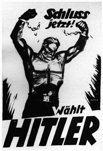 Reichspräsidentenwahl 13. März 1932, Plakat der NSDAP: "Schluss jetzt!", Fotografie aus der Sammlung von Heinrich Hoffmann (1885-1957). (Bayerische Staatsbibliothek, Bildarchiv hoff-6699)