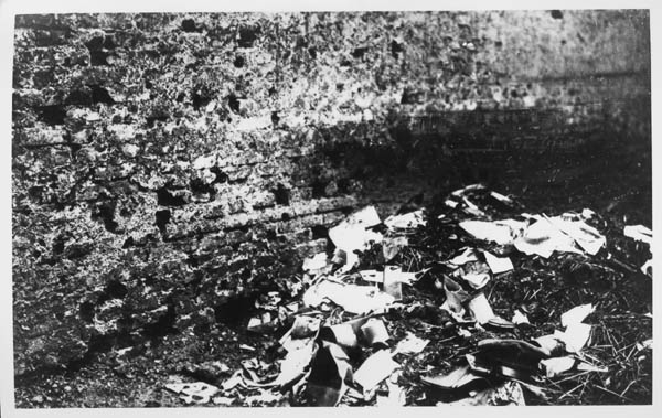 Erschießungsstelle der Geiseln im Hof des Luitpoldgymnasiums. (Bayerische Staatsbibliothek, Bildarchiv, hoff-5199)