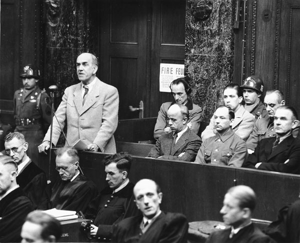 Der Chef des SS-Verwaltungsamts, Oswald Pohl (1892-1951), als Angeklagter in Nürnberg 1947. (Bayerische Staatsbibliothek, Bildarchiv hoff-61025)