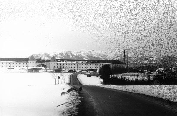 SS-Junkerschule Bad Tölz, hier kurz nach dem Neubau 1936. Von 1945 bis 1991 nutzte die US-Army die Baulichkeiten, die nun den Namen "Flint-Kaserne" trugen. (Bayerische Staatsbibliothek, Bildarchiv hoff-14405)