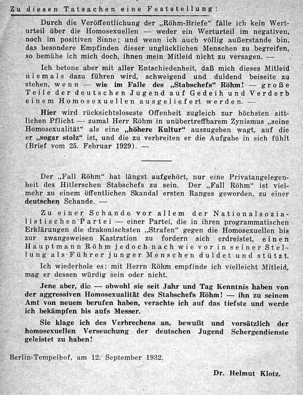 Auszug aus der Broschüre "Der Fall Röhm" von Helmut Klotz von 1932.