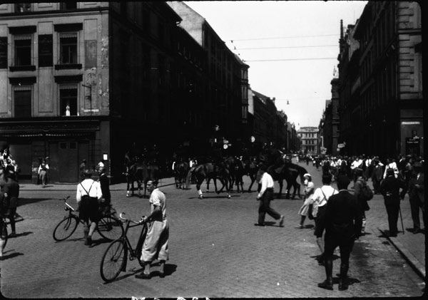 Auseinandersetzung zwischen SA und Polizei in der Münchner Amalienstraße, Juli 1931 nach dem Uniformverbot. (Bayerische Staatsbibliothek, Bildarchivhoff-7069)