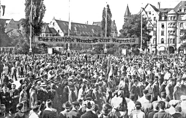 Verfassungsfeier in Nürnberg am 11. August 1926. (aus: Georg Gärtner, Mit uns zieht eine neue zeit. Geschichte der Nürnberger Arbeiterbewegung von ihren Anfängen bis 1928, Nürnberg 1928, nach 352)