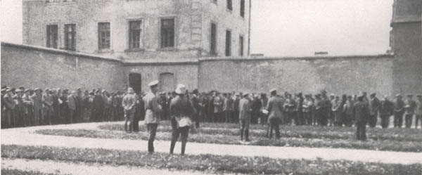 Gefangene in Stadelheim 1919. Abb. aus: General Franz Ritter von Epp, Reichstatthalter in Bayern. Sonderdruck aus der Heimatzeitschrift "Das Bayerland", München 1933, 24. (Bayerische Staatsbibliothek, 4 Bavar. 3223w)