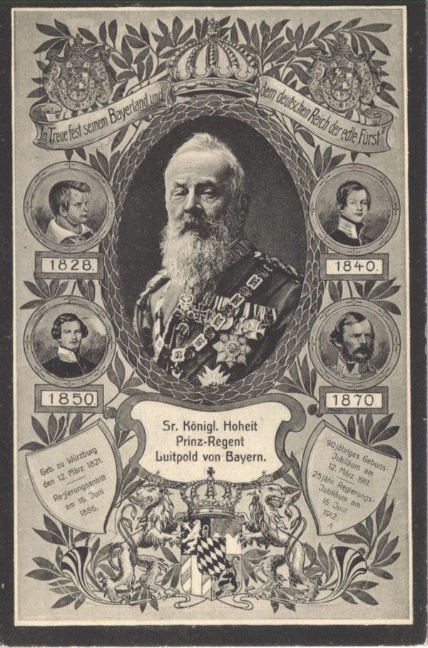 Prinzregent Luitpold von Bayern (1821-1912, Regent 1886-1912). Postkarte um 1911/12. (Bayerische Staatsbibliothek, Bildarchiv port-003500)