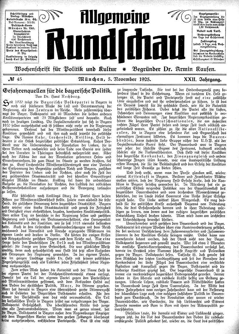 Beitrag von Hans Rechberg, 5 November 1925, Gefahrenquelle für die bayerische Politik, S1