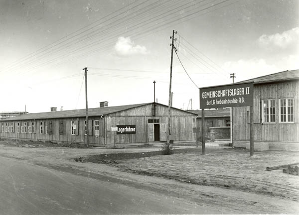 Wohnbaracken des Gemeinschaftslagers II der I.G. Farben in Ludwigshafen, 1941. (Foto: Unternehmensarchiv BASF, Ludwigshafen)