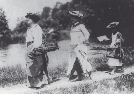Malerinnen auf dem Weg zum Motiv (vor 1914). (Zweckverband Dachauer Galerien und Museen)
