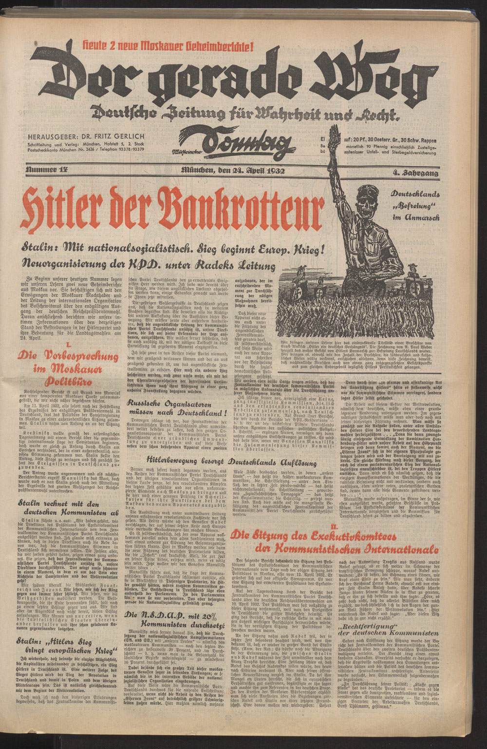 Der gerade Weg, Deutsche Zeitung für Wahrheit und Recht. Titelblatt der Ausgabe vom 22. April 1933.