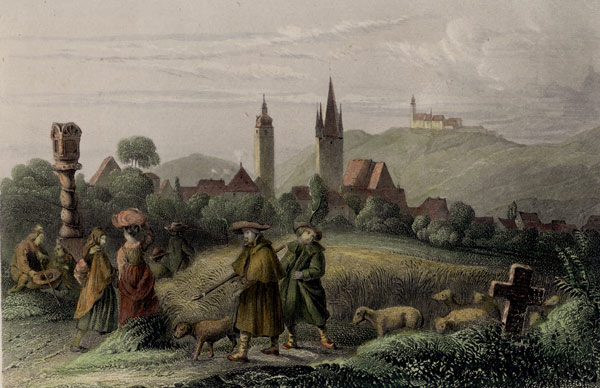 Lichtenfels und Banz. Kolorierter Stahlstich nach einem Gemälde von Ludwig Richter. (Bayerische Staatsbibliothek, Porträt- und Ansichtensammlung)