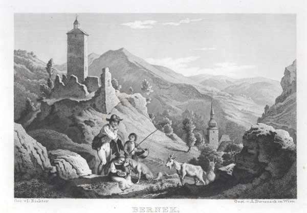 Berneck im Fichtelgebirge. Stahlstich nach einem Gemälde von Ludwig Richter. (Bayerische Staatsbibliothek, Porträt- und Ansichtensammlung)