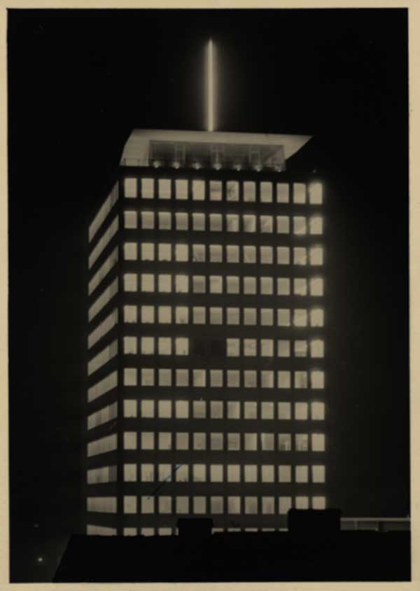 Plärrer-Hochhaus in Nürnberg bei Nacht, um 1955. (Privatbesitz)