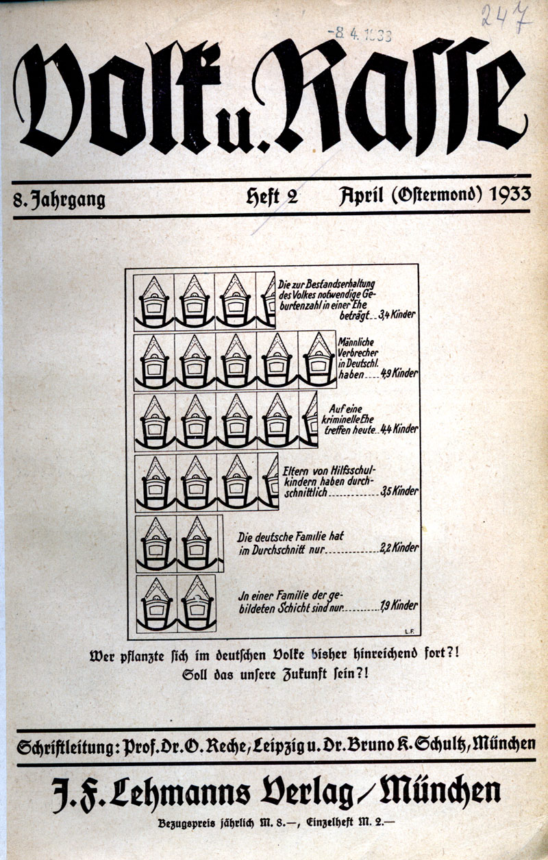 Titelblatt der Zeitschrift Volk und Rasse, 8 Jg, Heft 2, April 1933, erschienen im J F Lehmanns VerlagMünchen