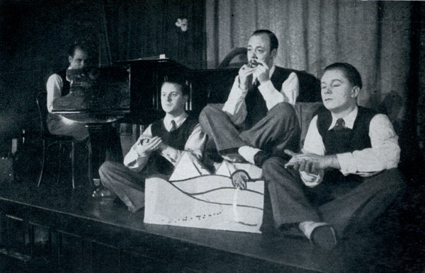 Die 4 Nachrichter, Aufnahme von 1931 (v.l. Frank Norbert, Kurd E. Heyne, Bobby Todd, Helmut Käutner). (Deutsches Kabarettarchiv, Mainz)