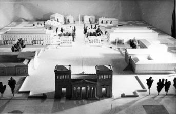 Modell des Münchner Königsplatzes mit Parteibauten und Ehrentempeln, 15. März 1934, vor den NS-Baumaßnahmen. (Bayerische Staatsbibliothek, Fotoarchiv Hoffmann)