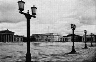 Königsplatz München, November 1935; im Hintergrund Glyptothek, Führerbau, Ehrentempel und "Braunes Haus". (Bayerische Staatsbibliothek, Fotoarchiv Hoffmann)