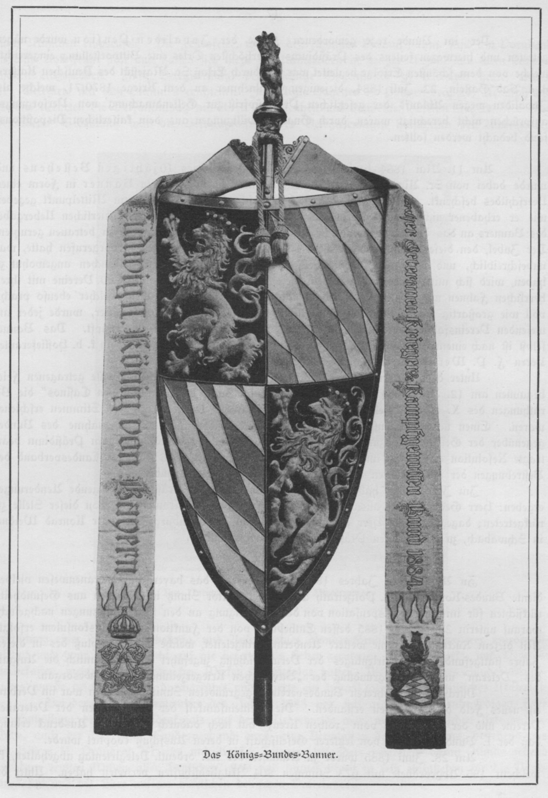 Königs-Bundes-Banner des Bayerischen Veteranen-, Krieger- und Kampfgenossen-Bundes, ein Geschenk König Ludwigs II von 1884 [aus: J Kalb, Festschrift zur Erinnerung an das 25jährige Jubliäum des Bayerischen Veteranen-, Krieger- und Kampfgenossen-Bundes 1874-1899, München 1899, S17]