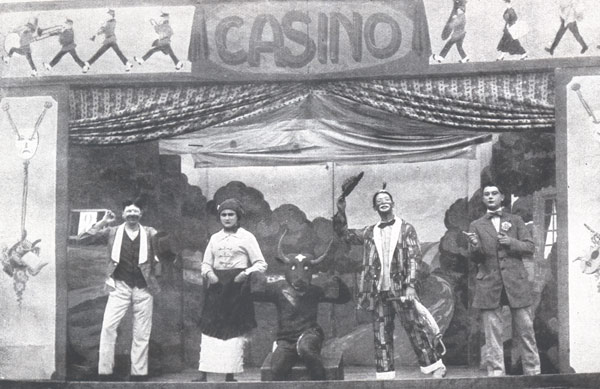 Theatervorstellung von Kriegsgefangenen in Amberg, ca. 1915. (aus: Alexander Backhaus, Die Kriegsgefangenen in Deutschland. Gegen 250 Wirklichkeitsaufnahmen aus deutschen Gefangenenlagern [Montanus-Bücher 7], Siegen/Leipzig/Berlin 1915, 87)