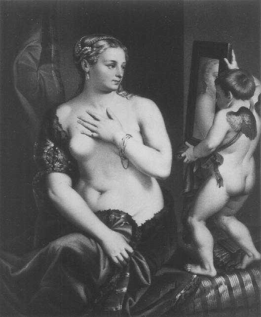 Tizian, Venus mit dem Spiegel; Lithographie von Franz Hanfstaengl (1804-1877). (Stadtmuseum München, Fotomuseum)