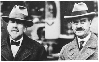 Die Schriftsteller Thomas (rechts; 1875-1955) und Heinrich Mann (1871-1950), undatiert. (Bayerische Staatsbibliothek Fotoarchiv Hoffmann)