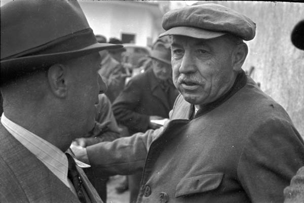 Thomas Wimmer (1887-1964), 1948-1960 Oberbürgermeister von München, 1949 (rechts im Bild in Arbeitskleidung und Schiebermütze). (Bayerische Staatsbibliothek, Bildarchiv fruh-00235)