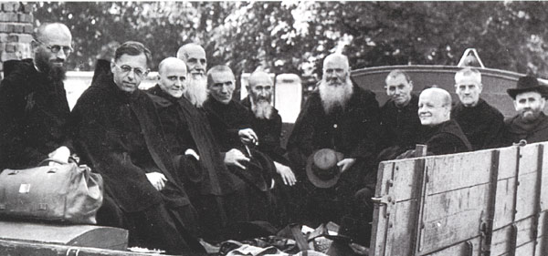 Abtransport von Mönchen aus der aufgehobenen Abtei Münsterschwarzach 1941 [Archiv der AbteiMünsterschwarzach]