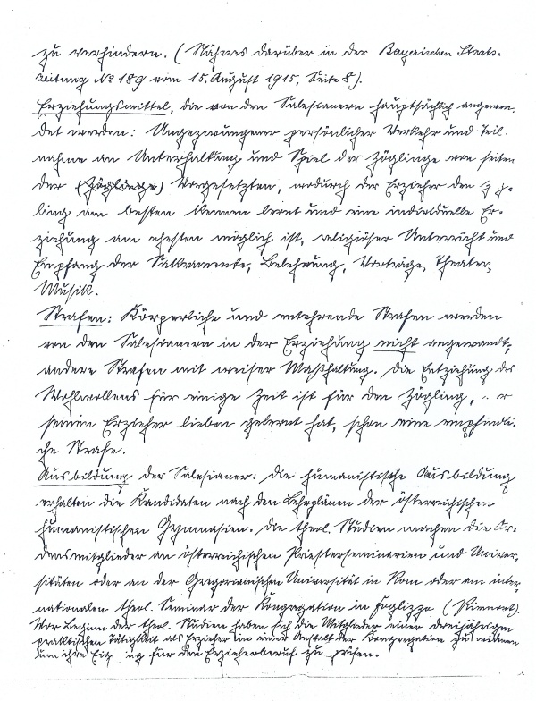Arbeit der Salesianer Don Boscos Der Direktor von Unterwaltersdorf [Niederösterreich], P Georg Ring [1879-1932], schildert Anfang 1916 dem Würzburger Domkapitular Alfred Winterstein [+ 1935], der mit dem Bayerischen Kultusministerium über das Kommen der Salesianer nach Würzburg verhandelte, das salesianische Konzept In dem Ausschnitt geht es um Erziehungsmittel, Strafen und Ausbildung [Archiv des Provinzialats der Salesianer Don BoscosMünchen]