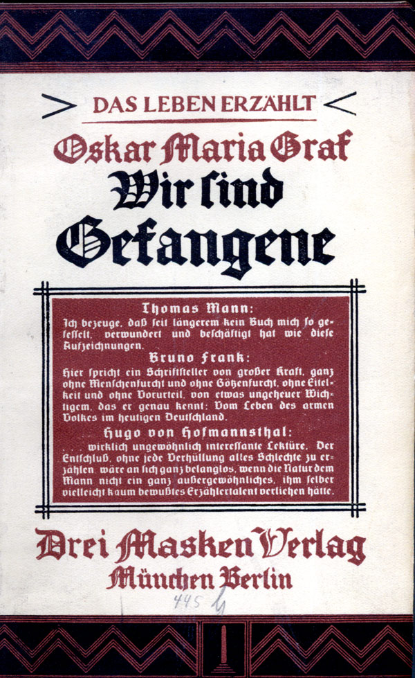 Titelblatt der 2. Auflage von Oskar Maria Graf, Wir sind Gefangene, Drei Masken Verlag München/Berlin, 1928.