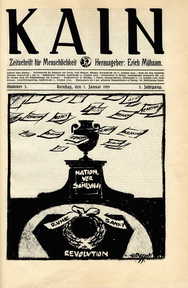 "Kain Zeitschrift für Menschlichkeit", hg. von Erich Mühsam, Titelblatt, 7. Januar 1919.