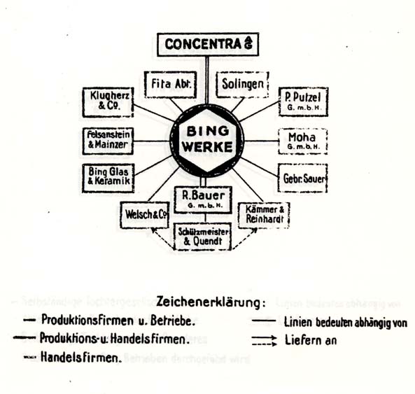 Der Bingkonzern Ende 1918 [aus: Kurt Lebermann, Die Konzentration der Bingwerke Nürnberg [Wirtschafts- und Verwaltungsstudien mit besonderer Berücksichtigung Bayerns 61], Leipzig-Erlangen 1924, nach50]