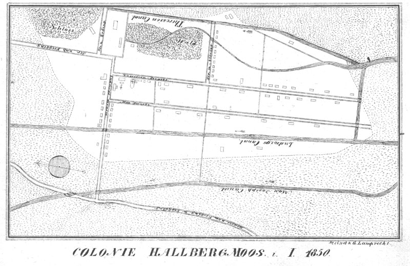 Plan der Moorkolonie Hallbergmoos 1850 [aus: Georg Schnell, Die Colonie Hallbergmoos, Reichenhall1851]
