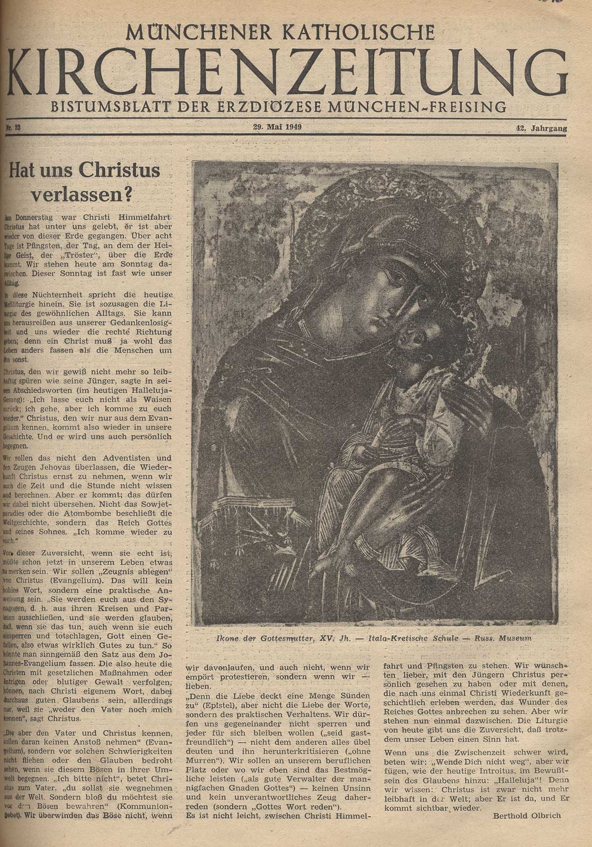 Münchener Katholische Kirchenzeitung Bistumsblatt der Erzdiözese München-Freising 42 [1949], Nr 22,Titelblatt