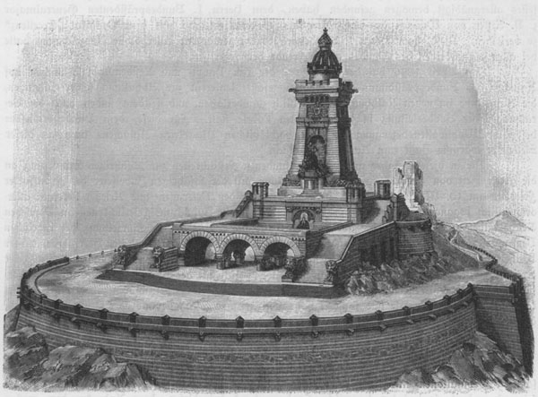 Das Kaiser-Wilhelm-Denkmal auf dem Kyffhäuser [Kyffhäuser-Denkmal], eingeweiht am 18 Juni 1896 [aus: J Kalb, Festschrift zur Erinnerung an das 25jährige Jubliäum des … Bayerischen Veteranen-, Krieger- und Kampfgenossen-Bundes 1874-1899, München 1899, S36]