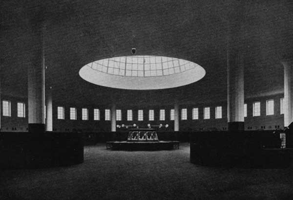 Paketzustellamt München von Robert Vorhoelzer, Verteilungshalle. (aus: Das Land Bayern. Seine kulturelle und wirtschaftliche Bedeutung für das Reich, München 1927, 371)