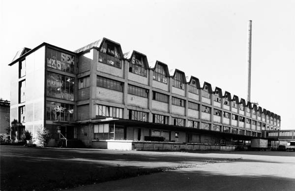 Milchhof in Nürnberg von Otto Ernst Schweizer, Außenansicht. Das dem Verfall preisgegebene Gebäude wurde 2008 abgebrochen. (Bayerisches Landesamt für Denkmalpflege, Foto: Lantz)