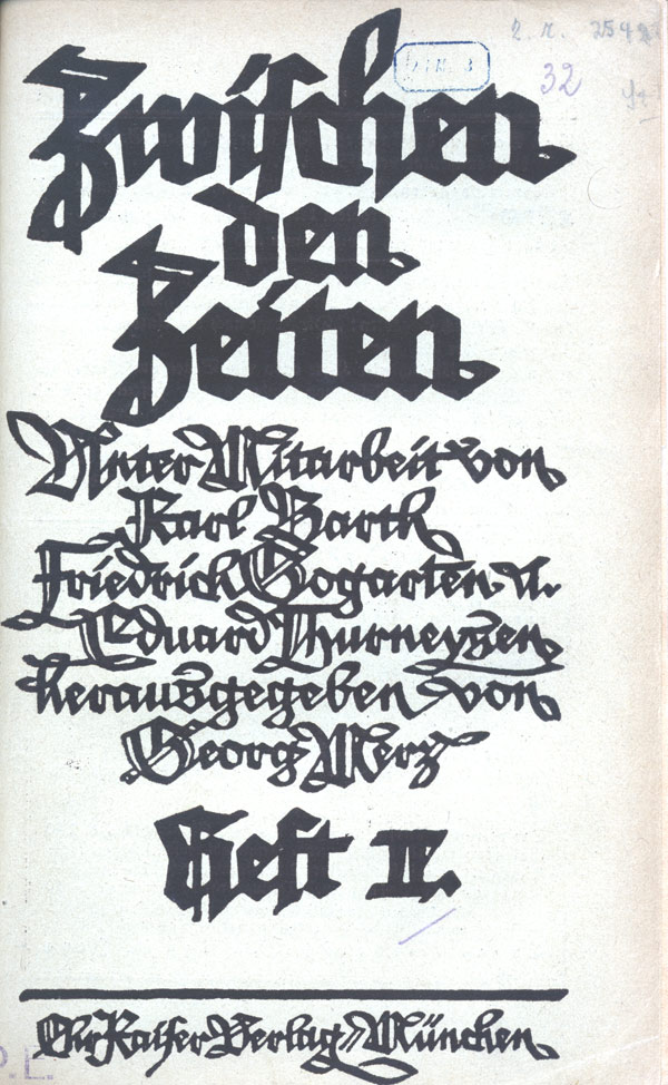 Titelblatt der Zeitschrift "Zwischen den Zeiten", zweites Heft des ersten Jahrgangs von 1923.
