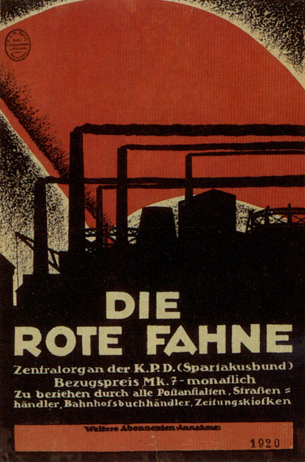 Werbung für die Tageszeitung "Die Rote Fahne", offizielles Presseorgan von Spartakusbund und KPD, 1920. (Bayerisches Hauptstaatsarchiv, Plakatsammlung)