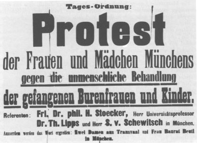 Veranstaltungsplakat einer Münchner Frauenversammlung gegen den Burenkrieg, 15 Dezember 1901 [Staatsarchiv München,Plakatsammlung]