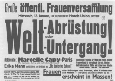 Plakat für die Frauenversammlung im Münchner Hotel Union am 13 Januar 1932 [Bayerisches Hauptstaatsarchiv,Plakatsammlung]