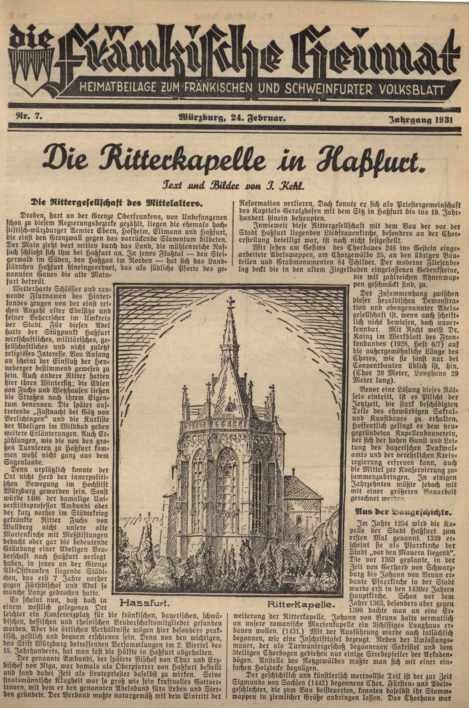 Als Heimatbeilage des Volksblatts erschien Die Fränkische Heimat, hier die Ausgabe vom 24 Februar1931