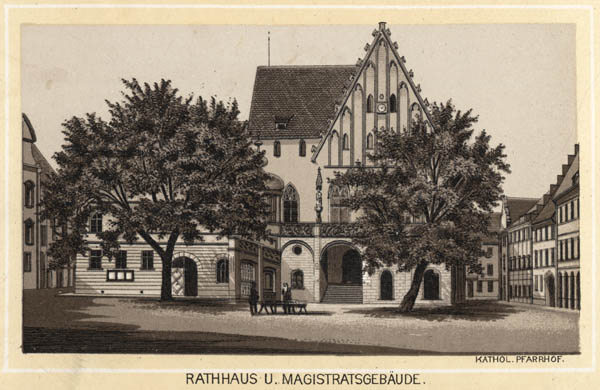 Amberger Rathaus In dem ursprünglich bereits im 14 Jahrhundert errichteten Gebäude hielten seit Anfang des 16 Jahrhunderts die Oberpfälzer Landstände ihre Landtage ab [Photolithographie 1884, Carl Garte] [Bayerische Staatsbibliothek, Portrait- undAnsichtensammlung]