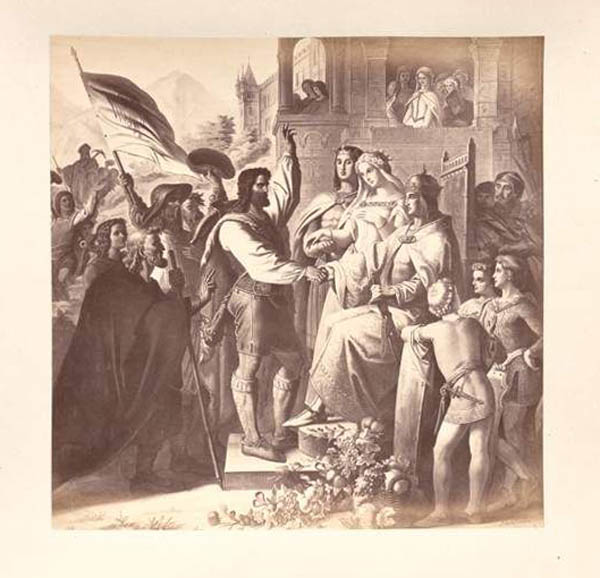 Erwerbung von Tyrol 1342 Wandbild im Gebäude des 1867 eröffneten Bayerischen Nationalmuseums [heute: Völkerkundemuseum] [aus: Karl von Spruner Die Wandbilder des Bayerischen National-Museums Band I, München, 1868, Tafel 29 Abbildung aus dem Exemplar, das König Ludwig II der Bayerischen Staatsbibliothek schenkte [BSB Rar106]]