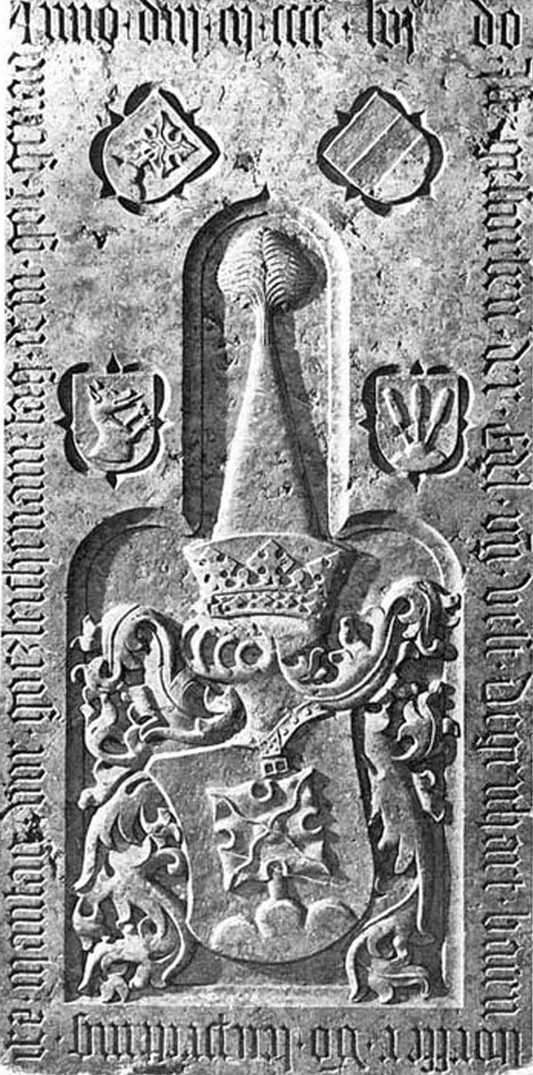 Grabstein des Degenhart Watzmannsdorfer zu Leoprechting [gest 1456] in der Pfarrkirche von Kellberg Die 1527 ausgestorbene Familie gehörte zu den größten adeligen Grundherren im Hochstift Passau [Heimat- und Trachtenverein ImmergrünWotzdorf]