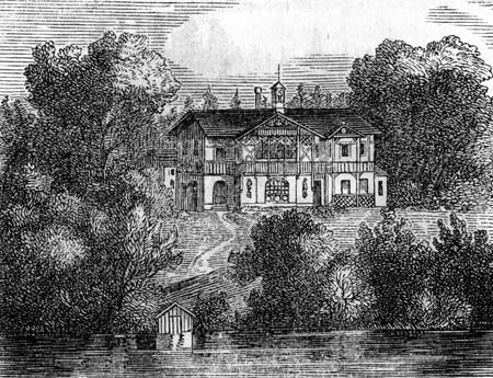 Villa Zenetti in Niederpöcking - Holzschnitt 1857, Künstler unbekannt. (Bayerische Staatsbibliothek, Bildarchiv port-004187)