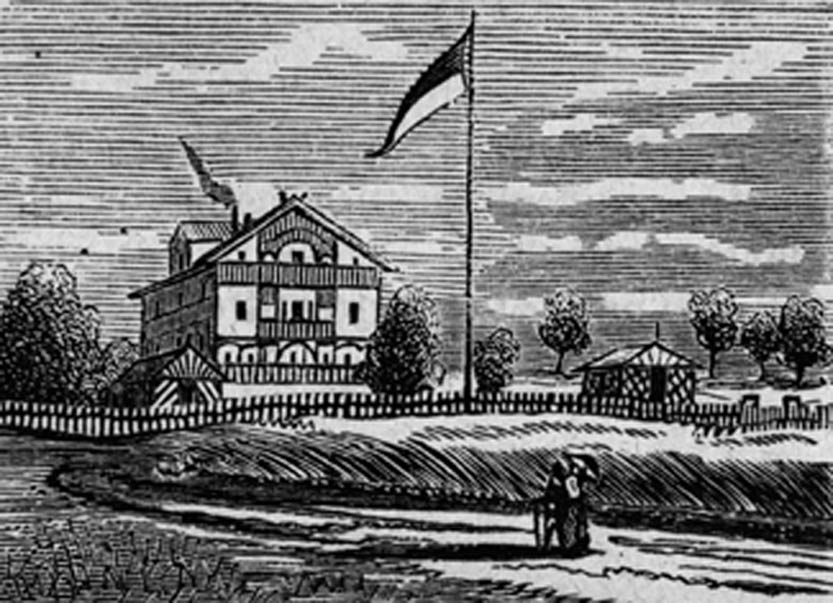 Villa des Bankiers Johann Baptist Ströll in Possenhofen - Holzschnitt 1875. (Bayerische Staatsbibliothek, Bildarchiv port-004230)