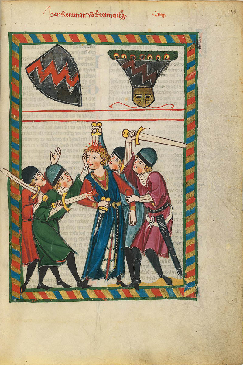 Reinmar von Brennenberg im Codex Manesse, 1300 bis ca. 1340. (Universitätsbibliothek Heidelberg, Cod. Pal. germ. 848, 188r)