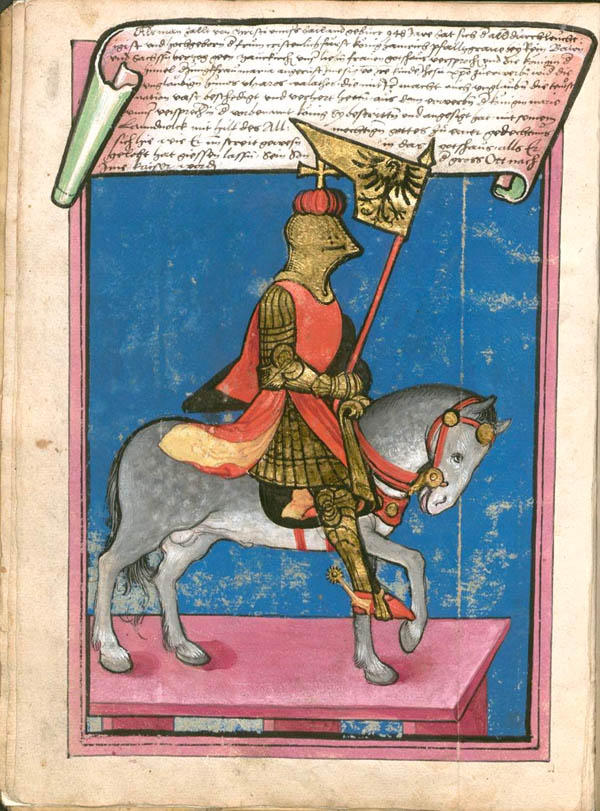 Illustration aus dem Turnierbuch des Ludwig von Eyb. (Bayerische Staatsbibliothek, Cgm 961, fol 3')