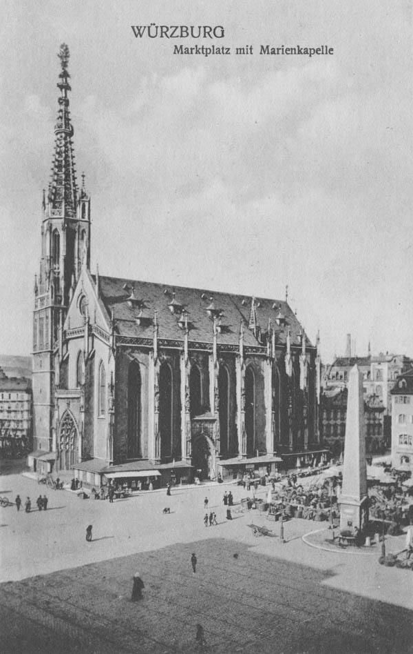 Die neugotische Gestalt der Marienkapelle. Postkarte um 1930. (Bayerische Staatsbibliothek, Bildarchiv port-015535)