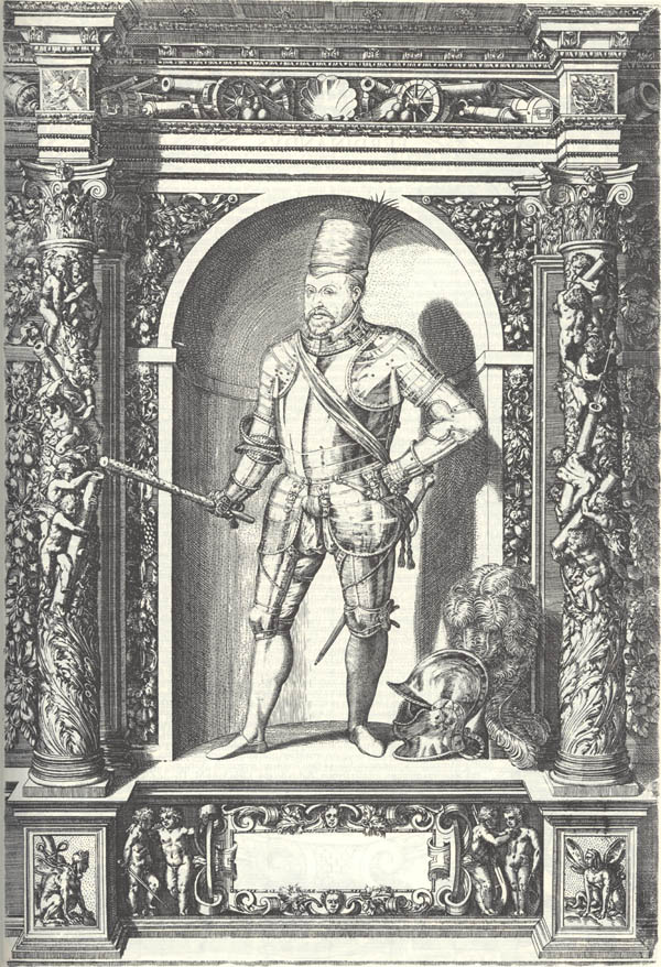 Ferdinand II. von Tirol (1529-1595). (aus: Jakob von Schrenck-Notzing, Der aller durchleuchtigisten und großmächtigen Kayser, Könige, durchleuchtigisten unnd großmächtigen Königen & Ertzhertzogen, durchl. & hochgebornen Fürsten, wie auch Grafen, Herrn von Adel, und anderer treflicher Berühmbter Kriegßhelden, ... warhafftige Bildtnussen ..., Innsbruck 1603)
