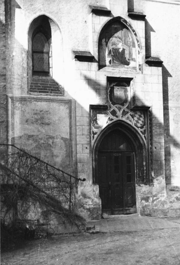 Blutenburg, Portal der Schlosskapelle Heiligste Dreifaltigkeit. (Bayerische Staatsbibliothek, Bildarchiv Hoffmann)